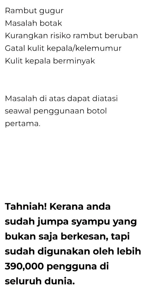 PAKEJ SHAMPOO: 1 BOTOL SHAMPOO RM50 (FREE-POS)