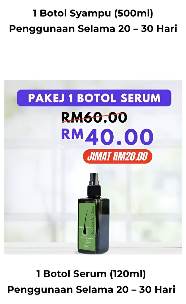 PAKEJ HAIR SERUM: 1 BOTOL HAIR SERUM RM40 (FREE-POS)