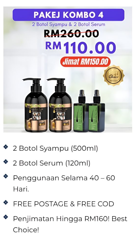 PAKEJ KOMBO 4: 2 SHAMPOO + 2 SERUM RAMBUT (PALING JIMAT) RM110 (FREE-POS)